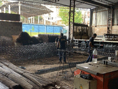 Corte e dobra de precisão para vigas de grande porte em obra comercial em São Bernardo do Campo.